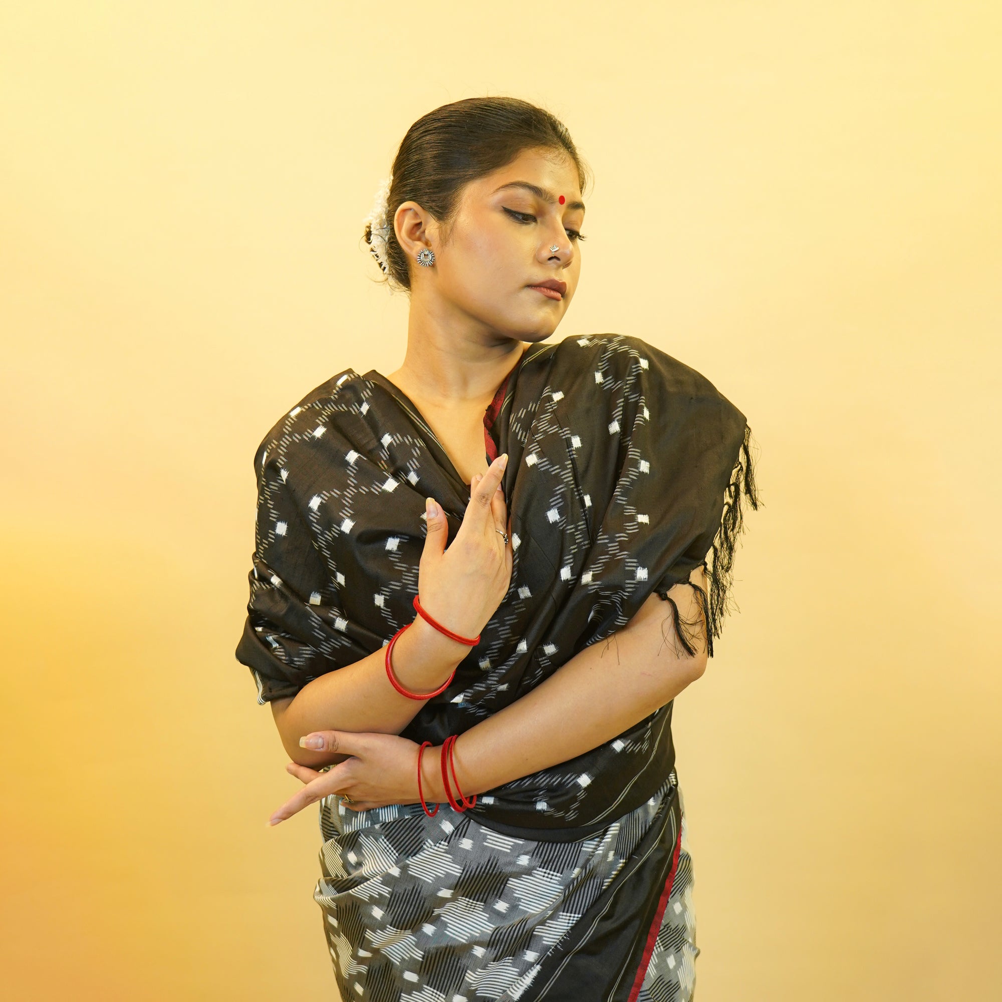 Golden & Black Mulberry Silk Odisha Ikat Saree