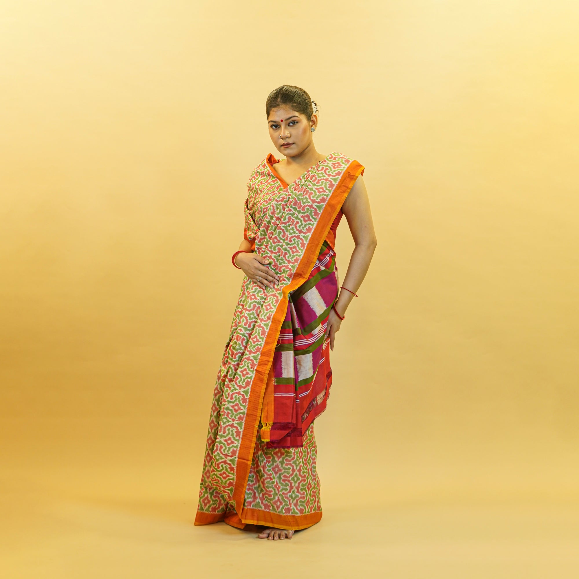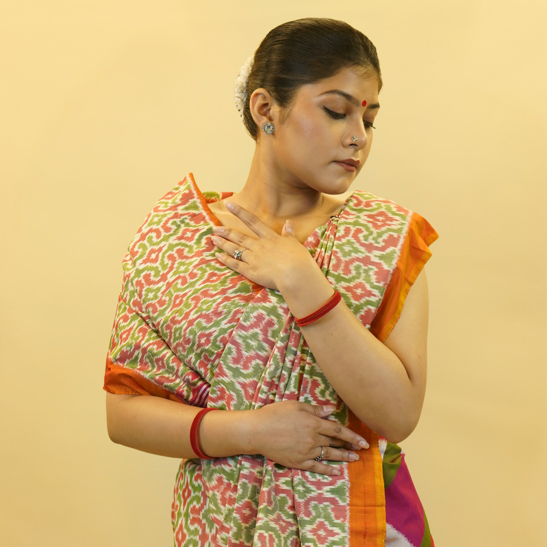 Bibhu Mohapatra Orange & Green Mulberry Silk Pochampally Ikat Saree