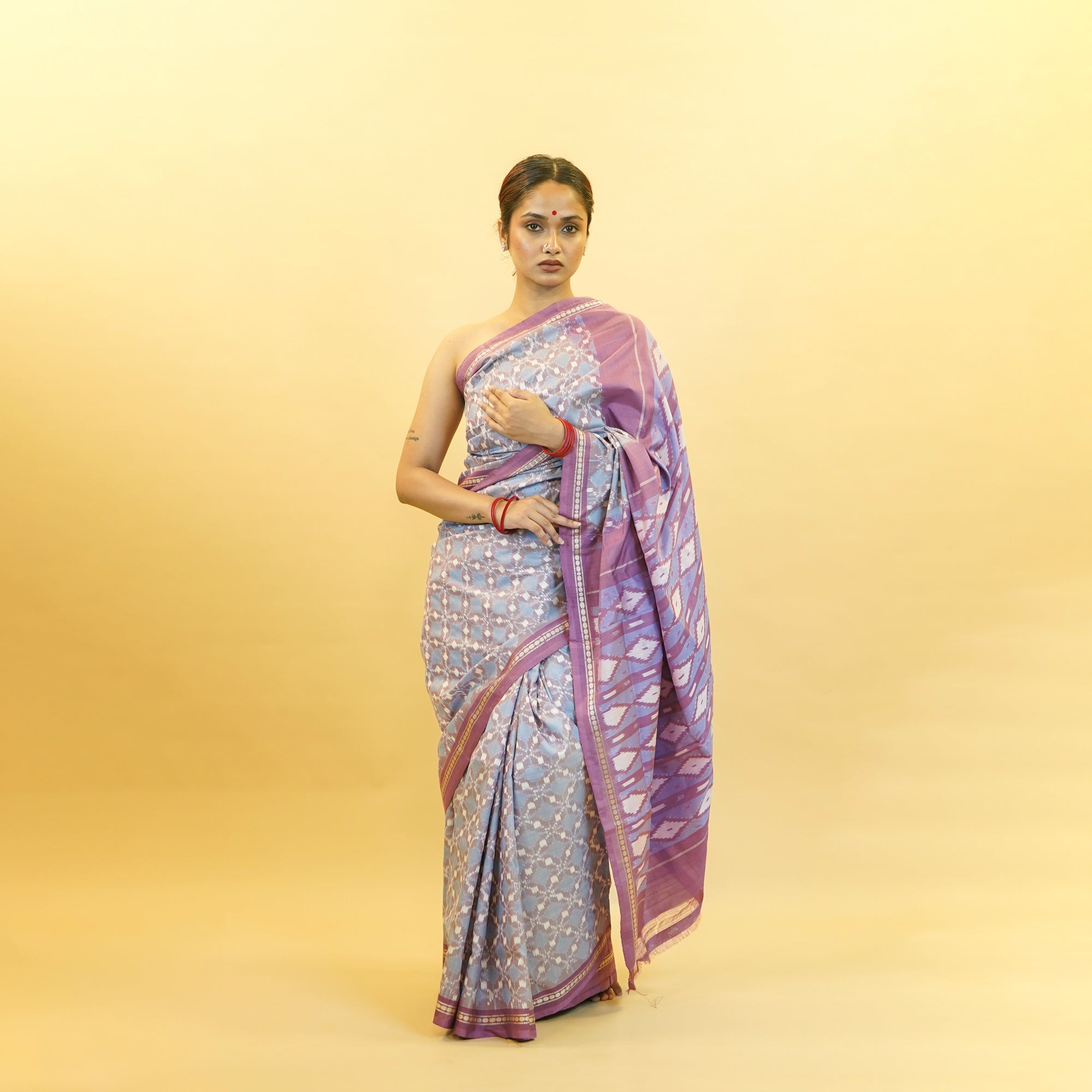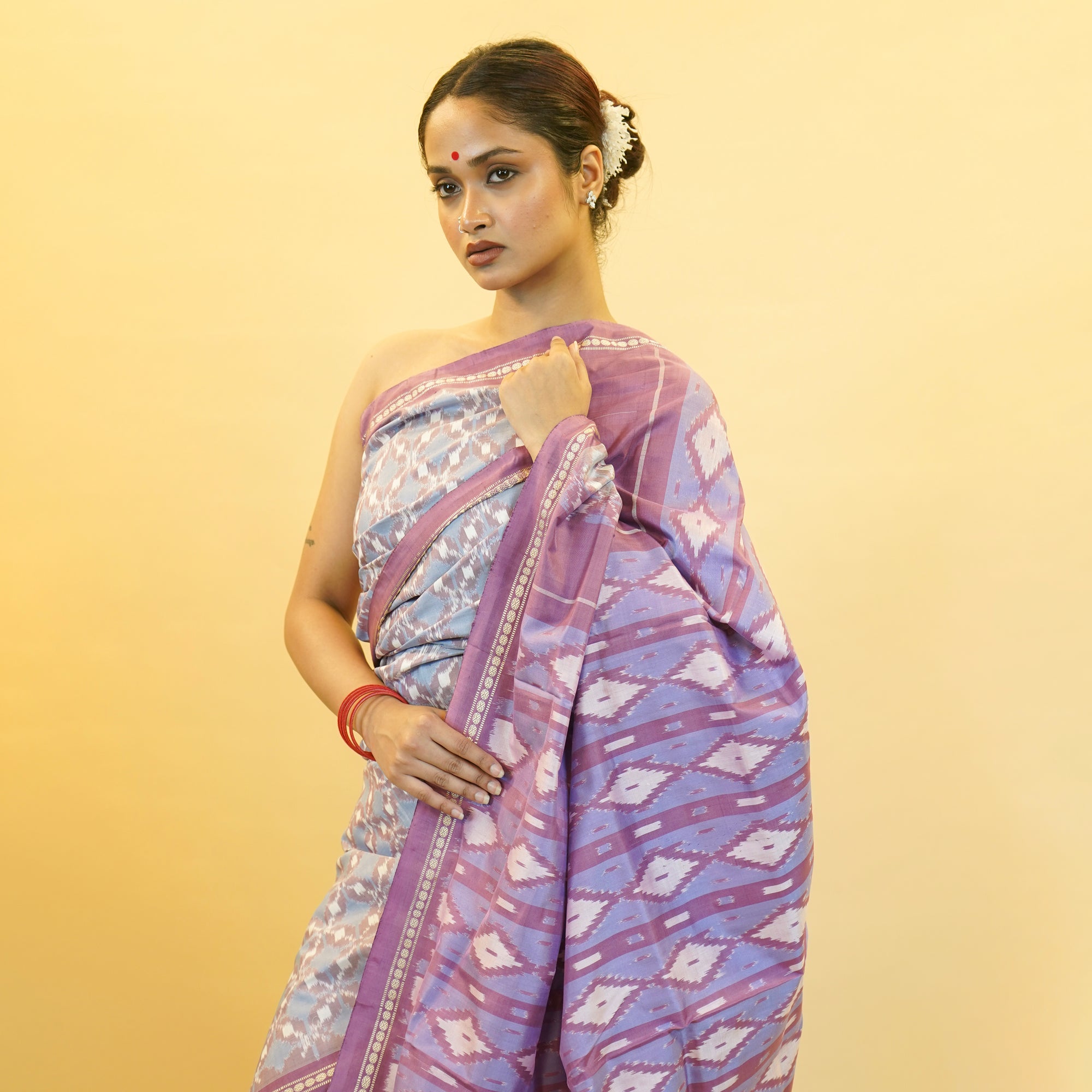 Bibhu Mohapatra Purple & Silver Mulberry Silk Pochampally Ikat Saree