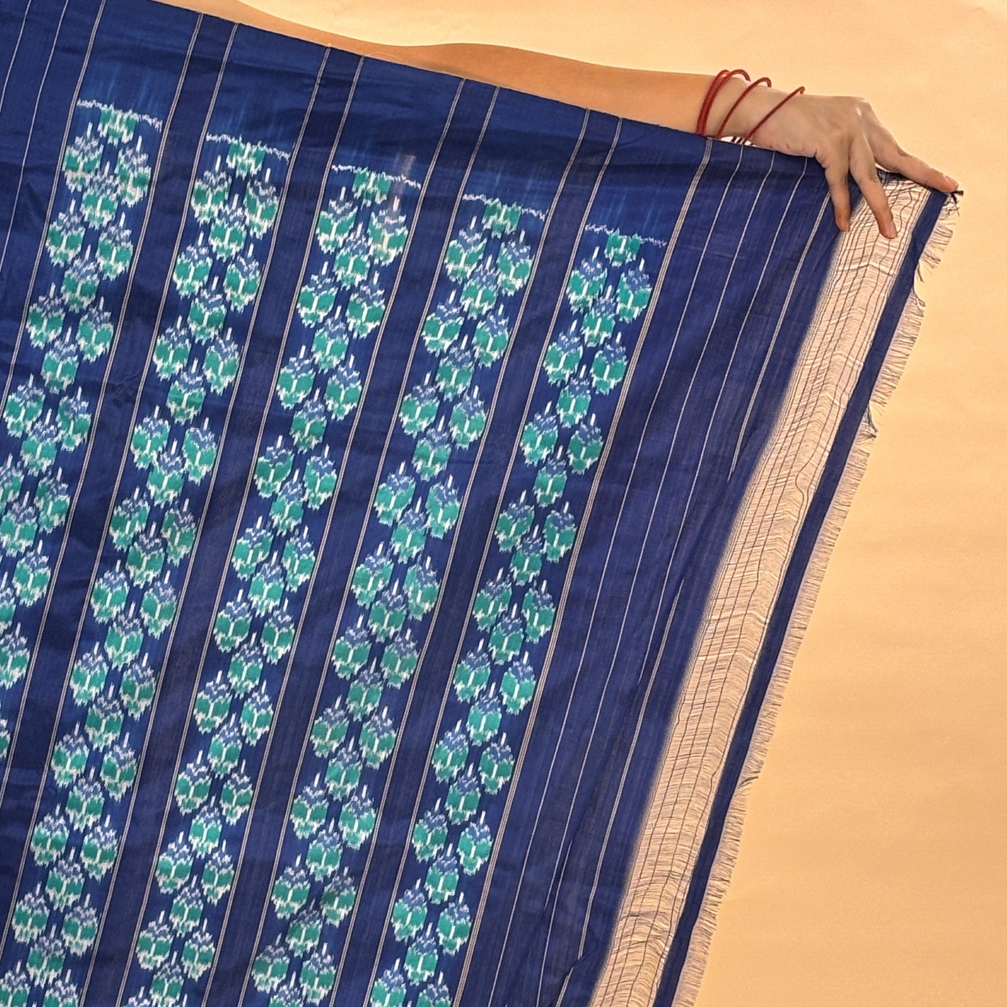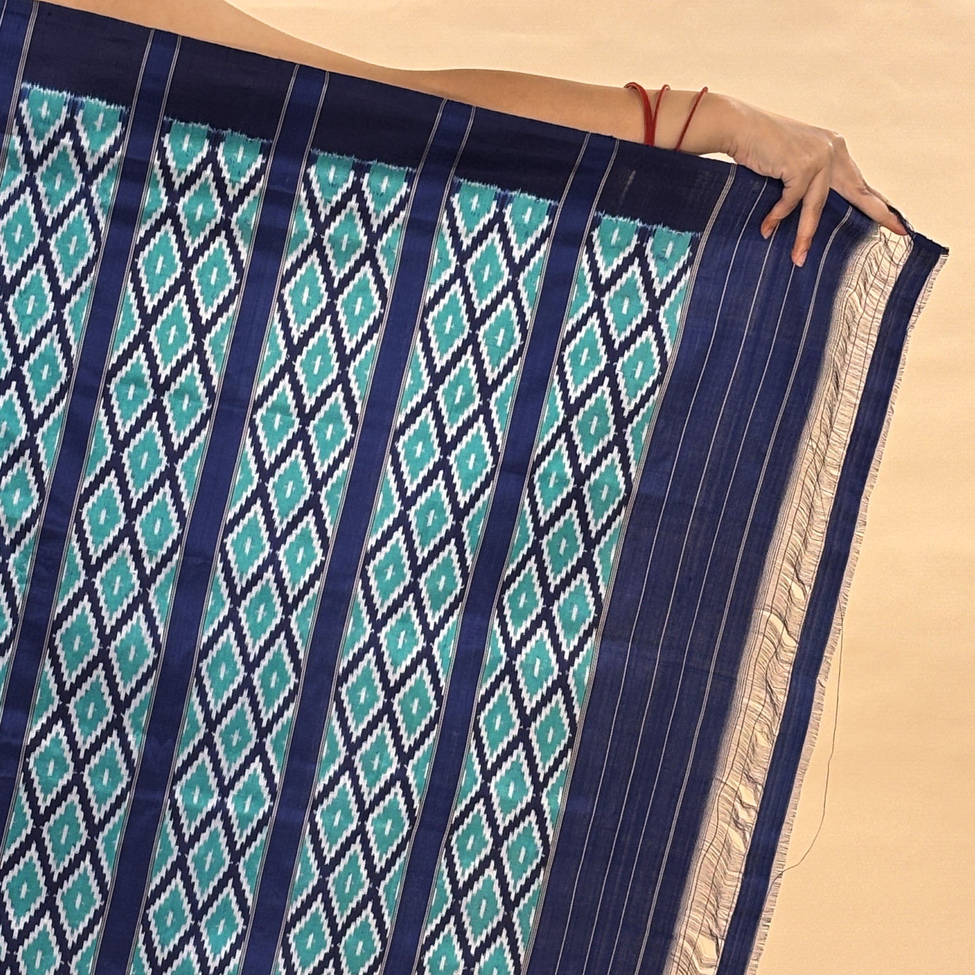 Blue & Green Mulberry Silk Odisha Diamond Style Ikat Saree