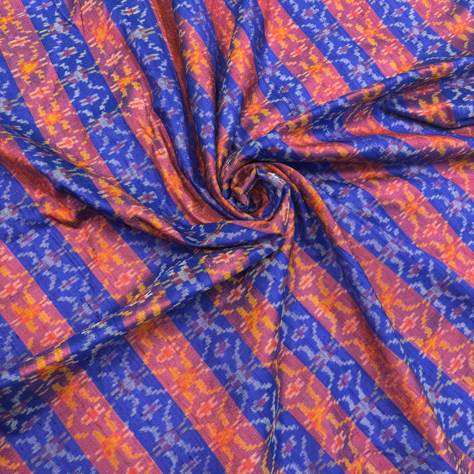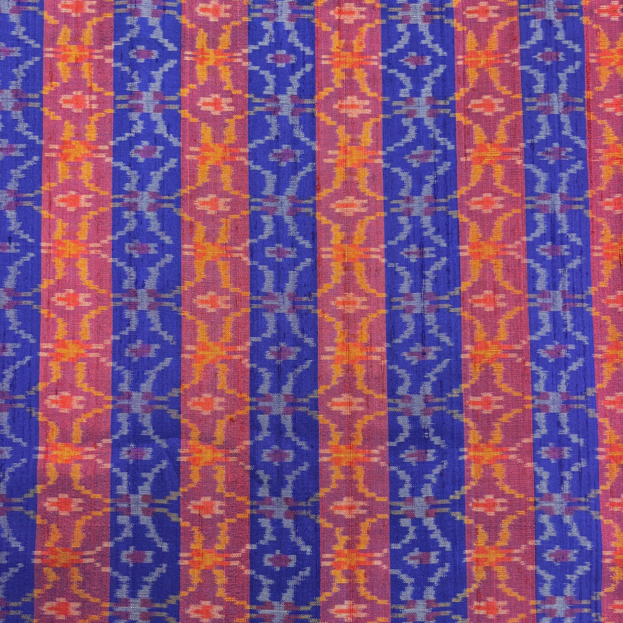 Blue & Purple Raw Silk Pochampally Ikat Fabric