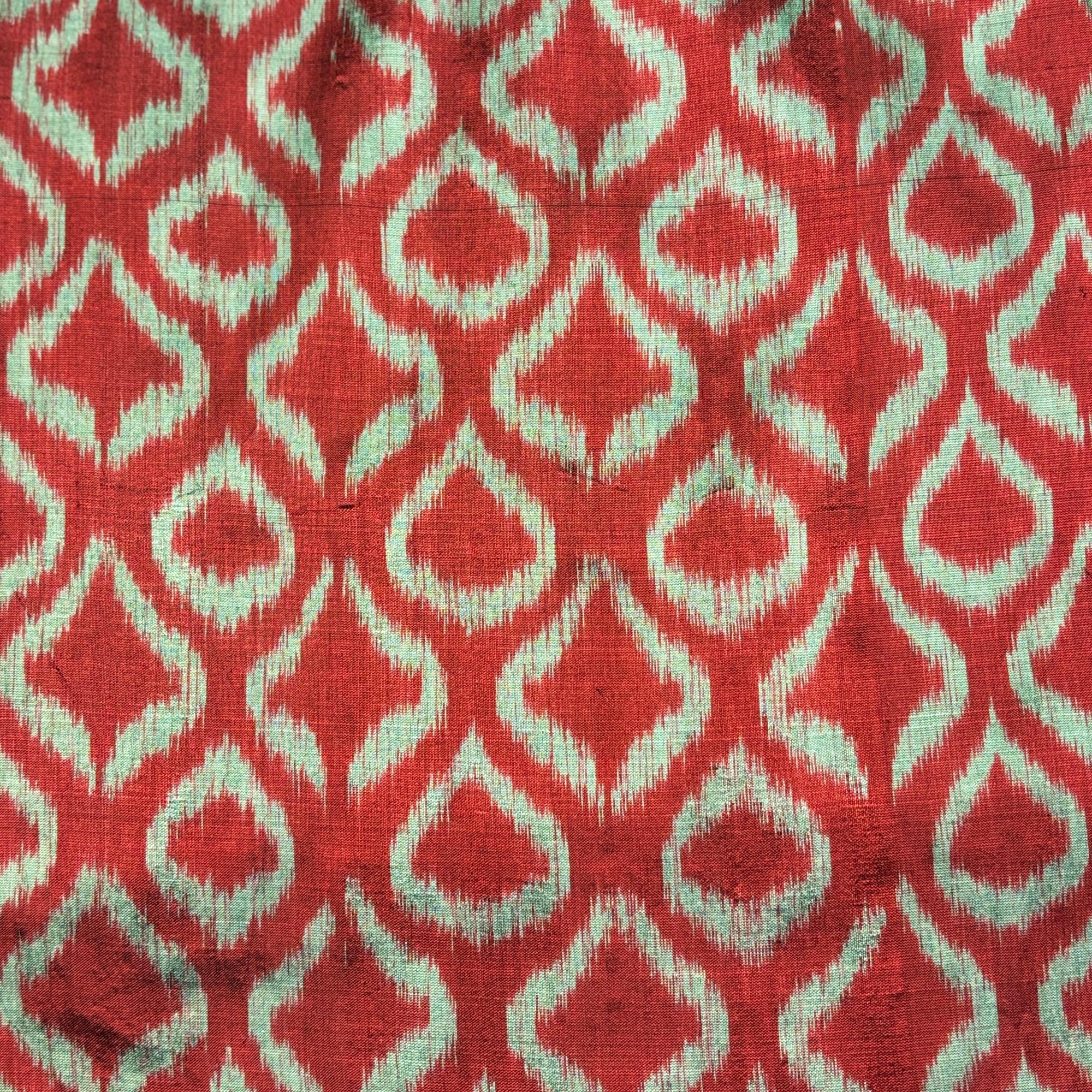Black & Mint Mulberry Silk Pochampally Ikat Fabric