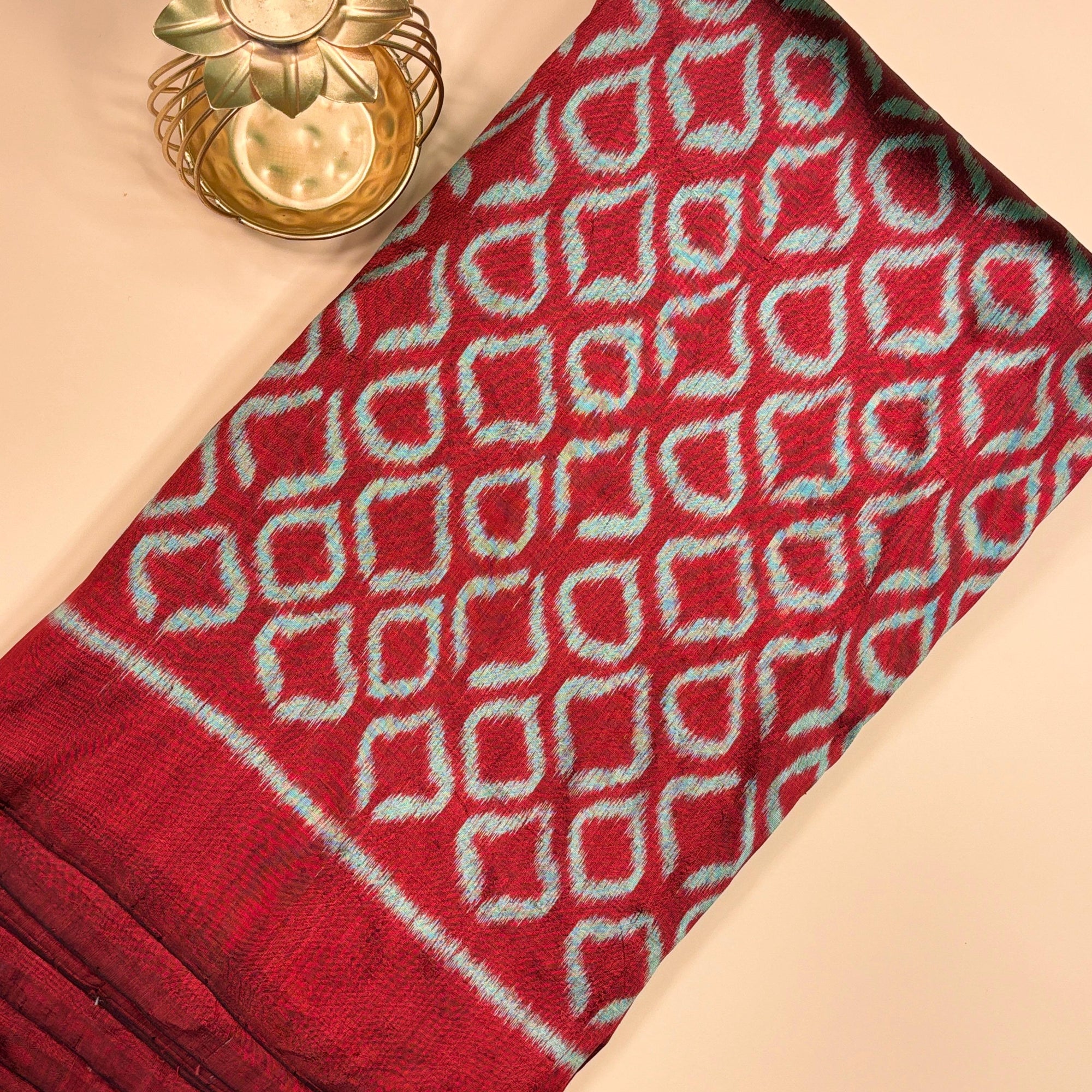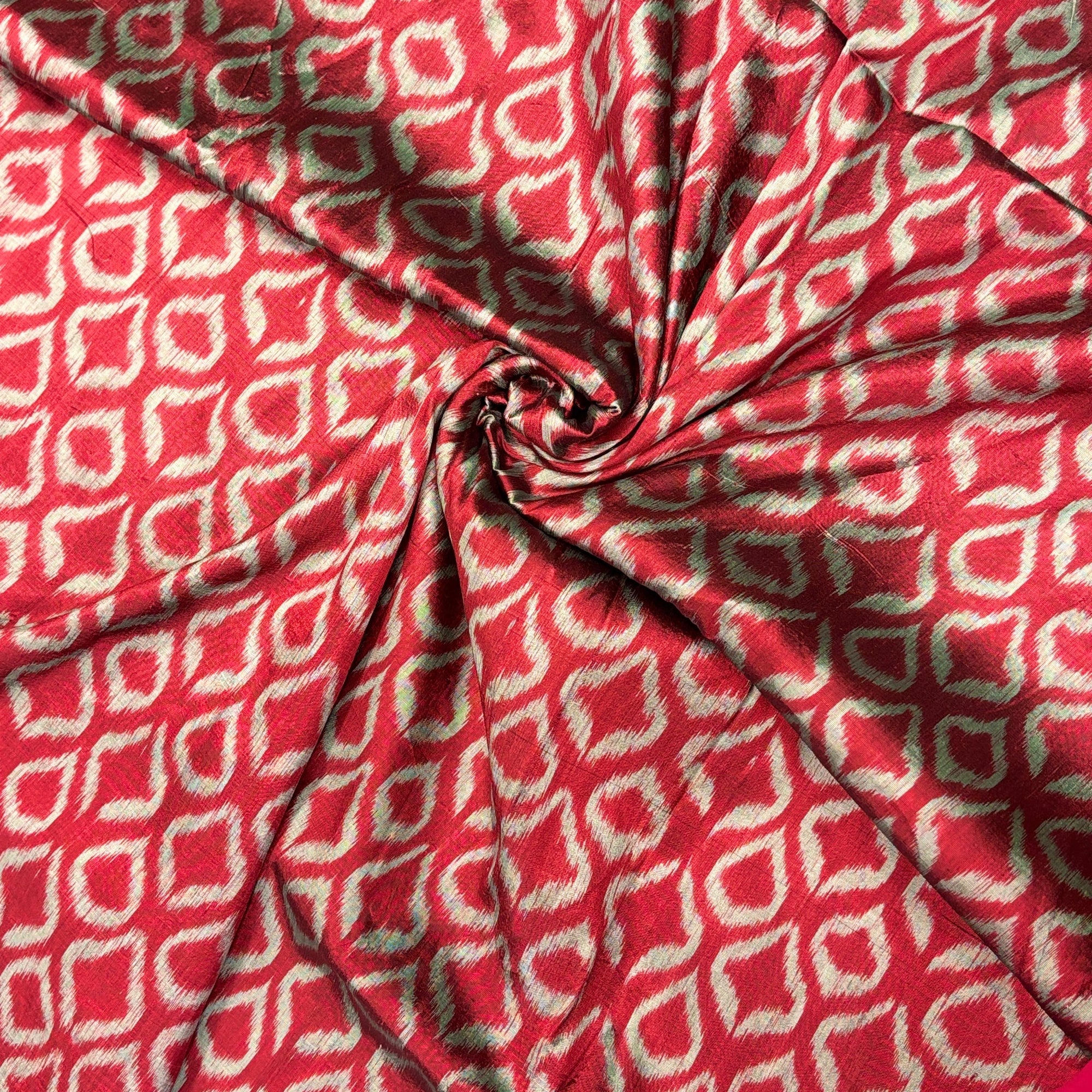 Maroon & Grey Mulberry Silk Pochampally Ikat Fabric