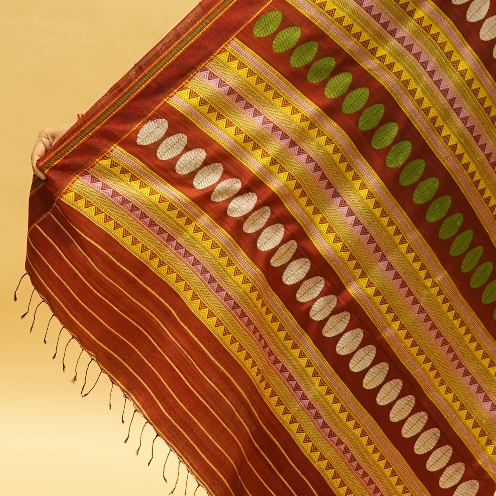 Maroon & Orangish Yellow Mulberry Silk Odisha Ikat Saree