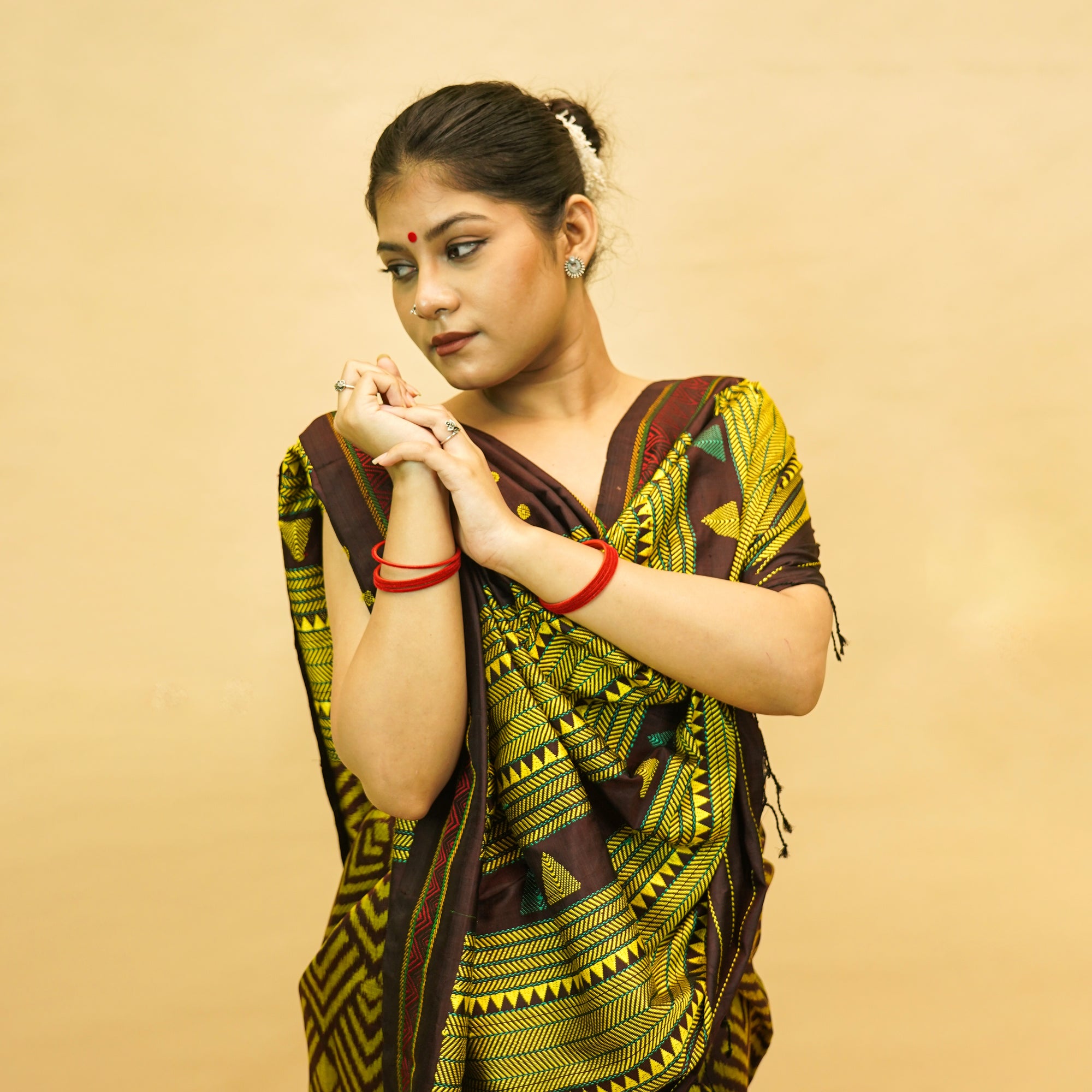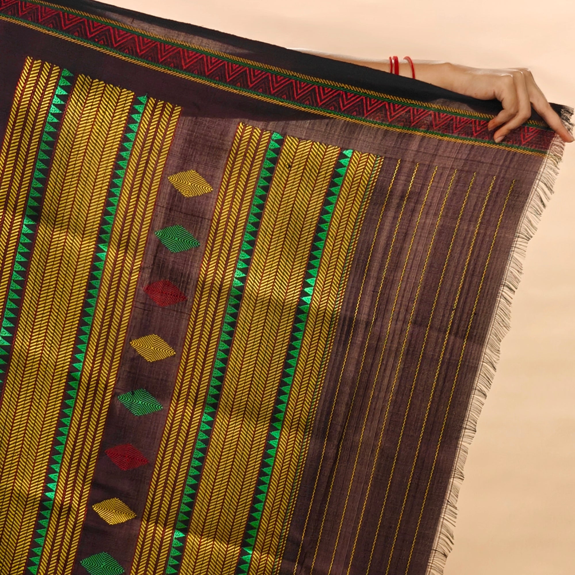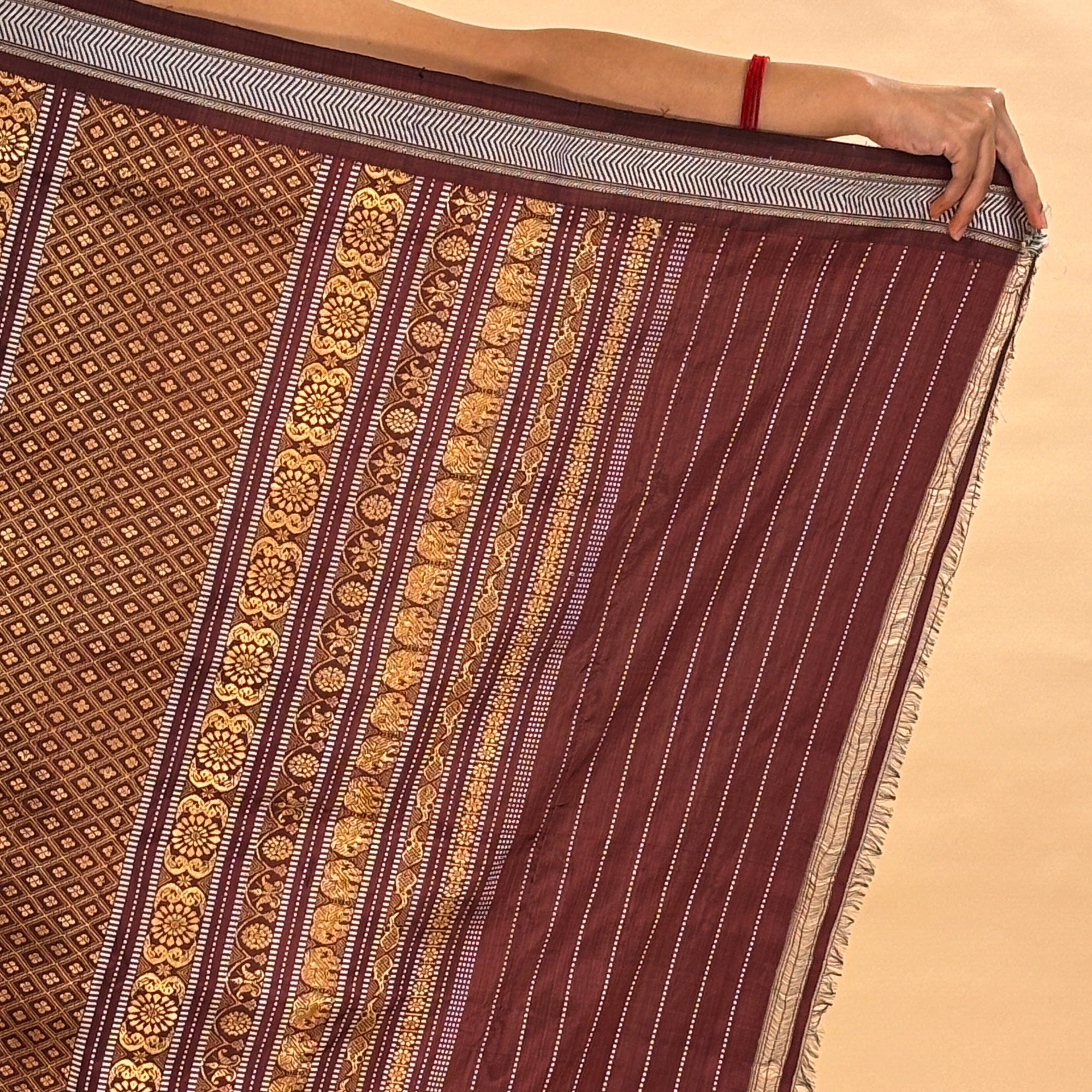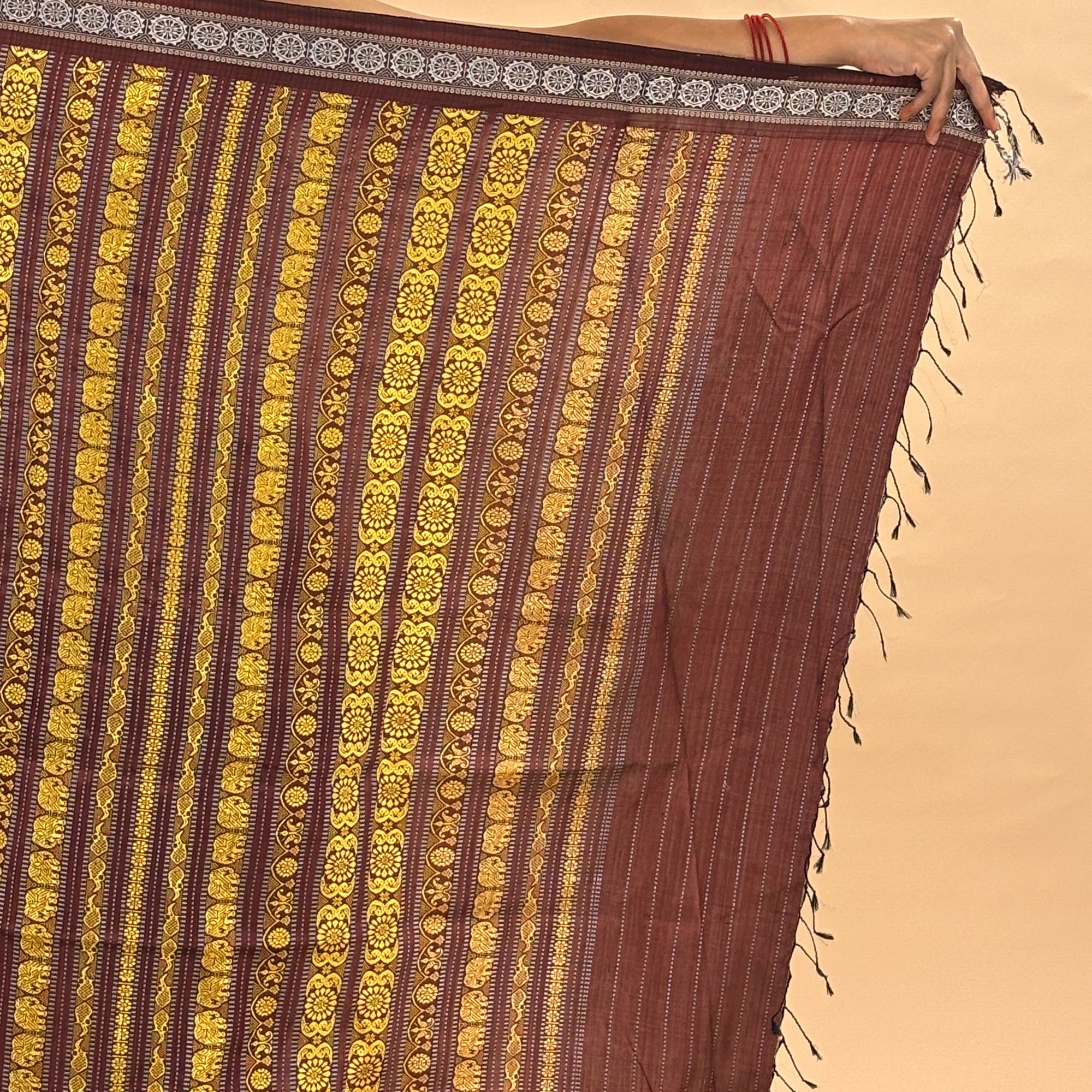 Chocolate Brown & Yellow Mulberry Silk Odisha Ikat Saree