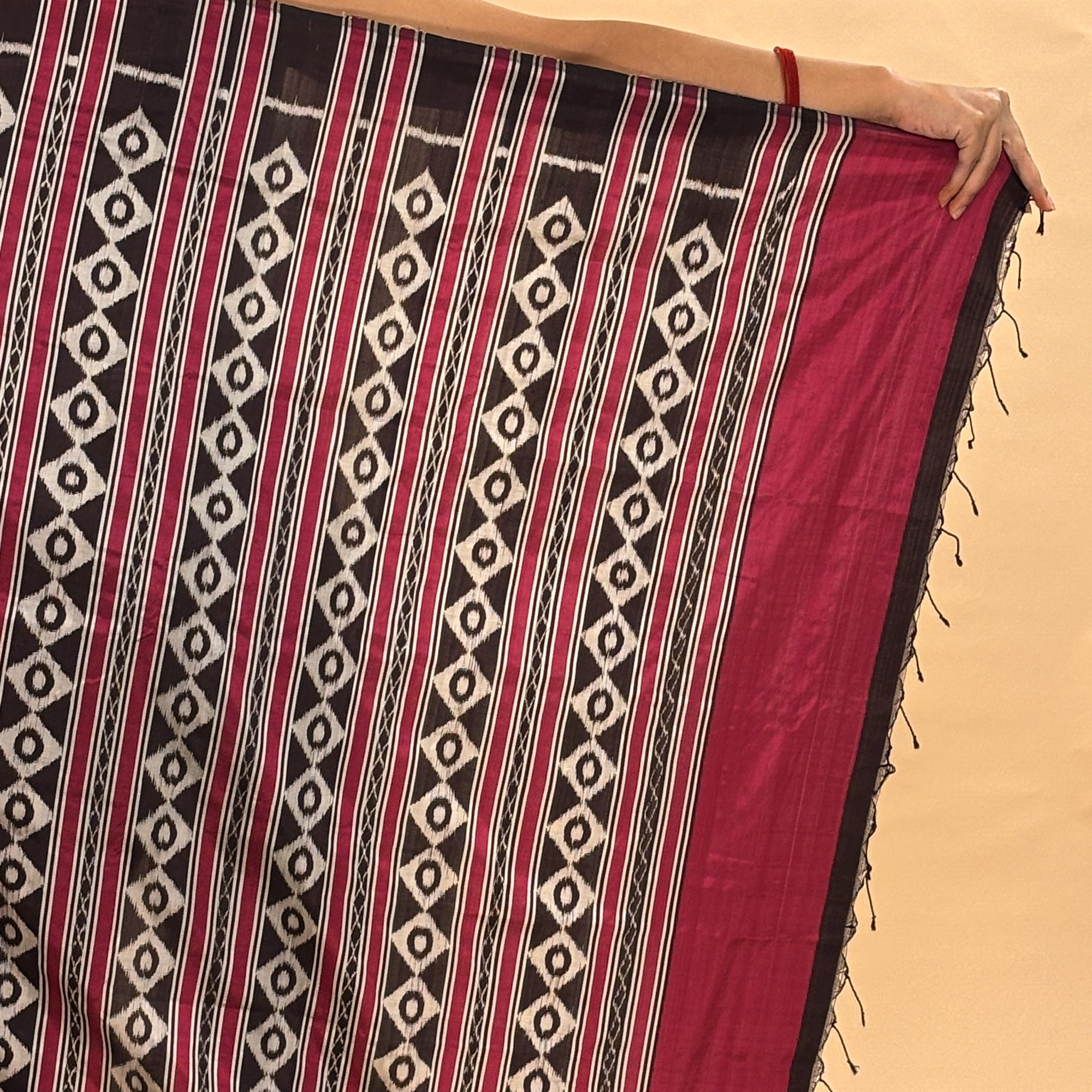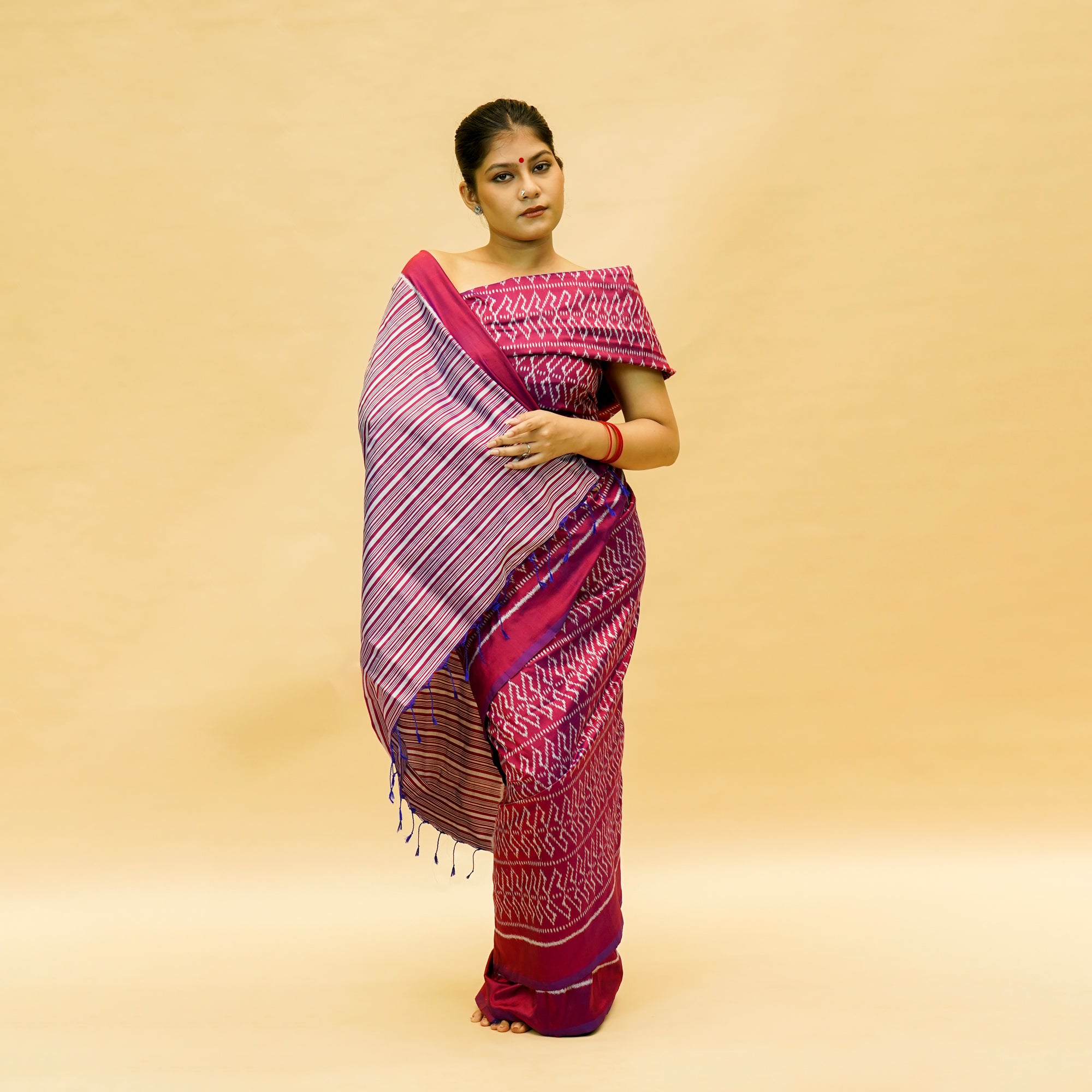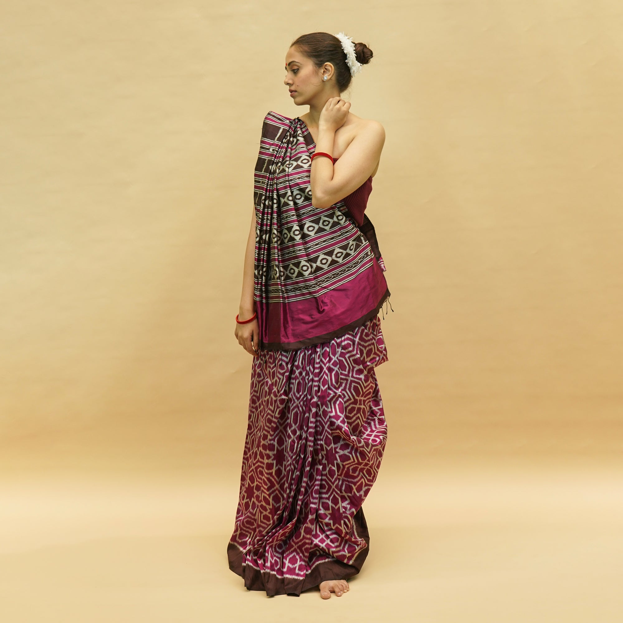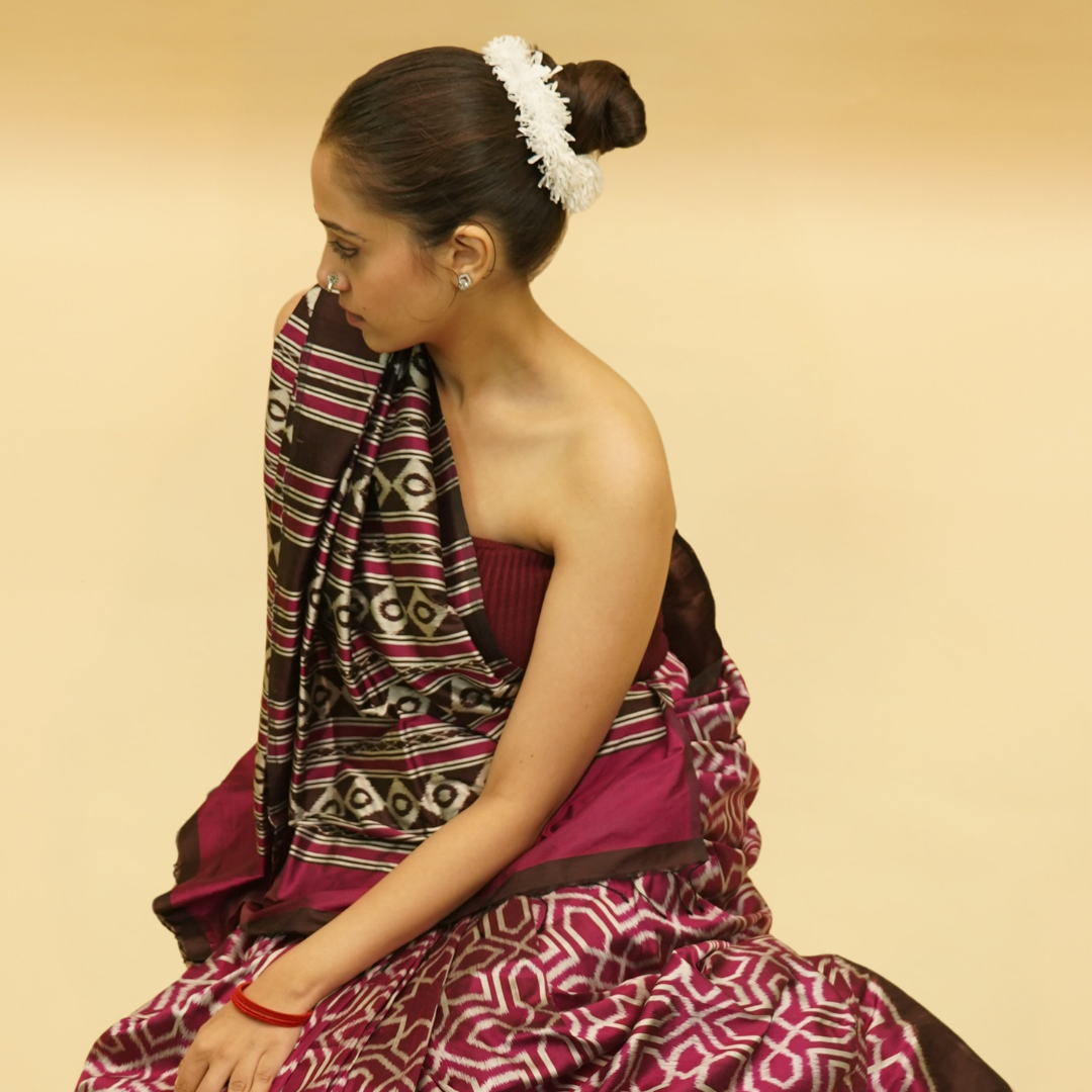 Magenta & Brown Mulberry Silk Odisha Ikat Saree