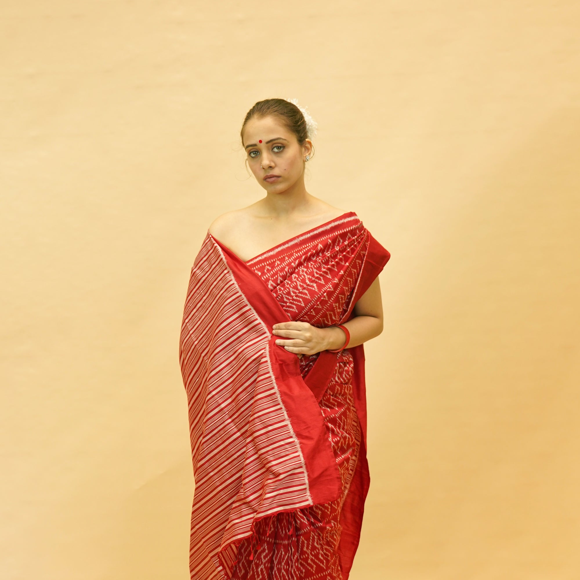 Violet & Red Mulberry Silk Odisha Ikat Saree