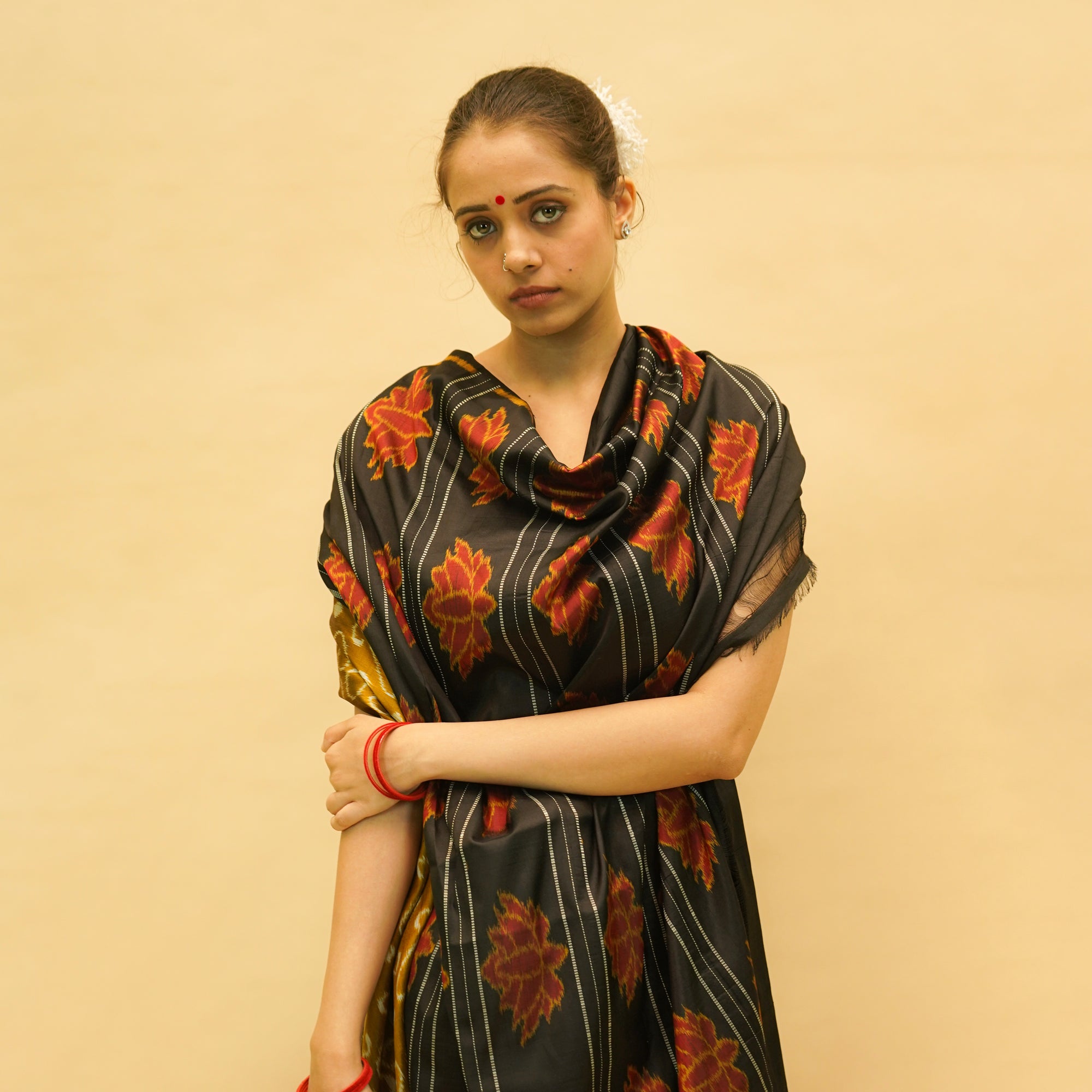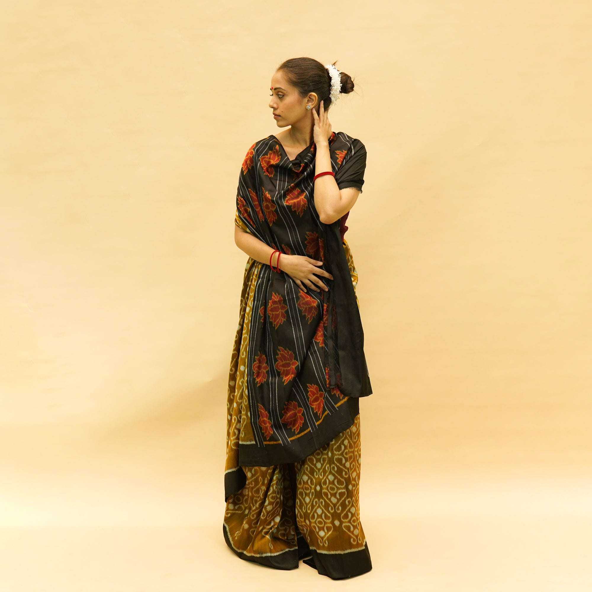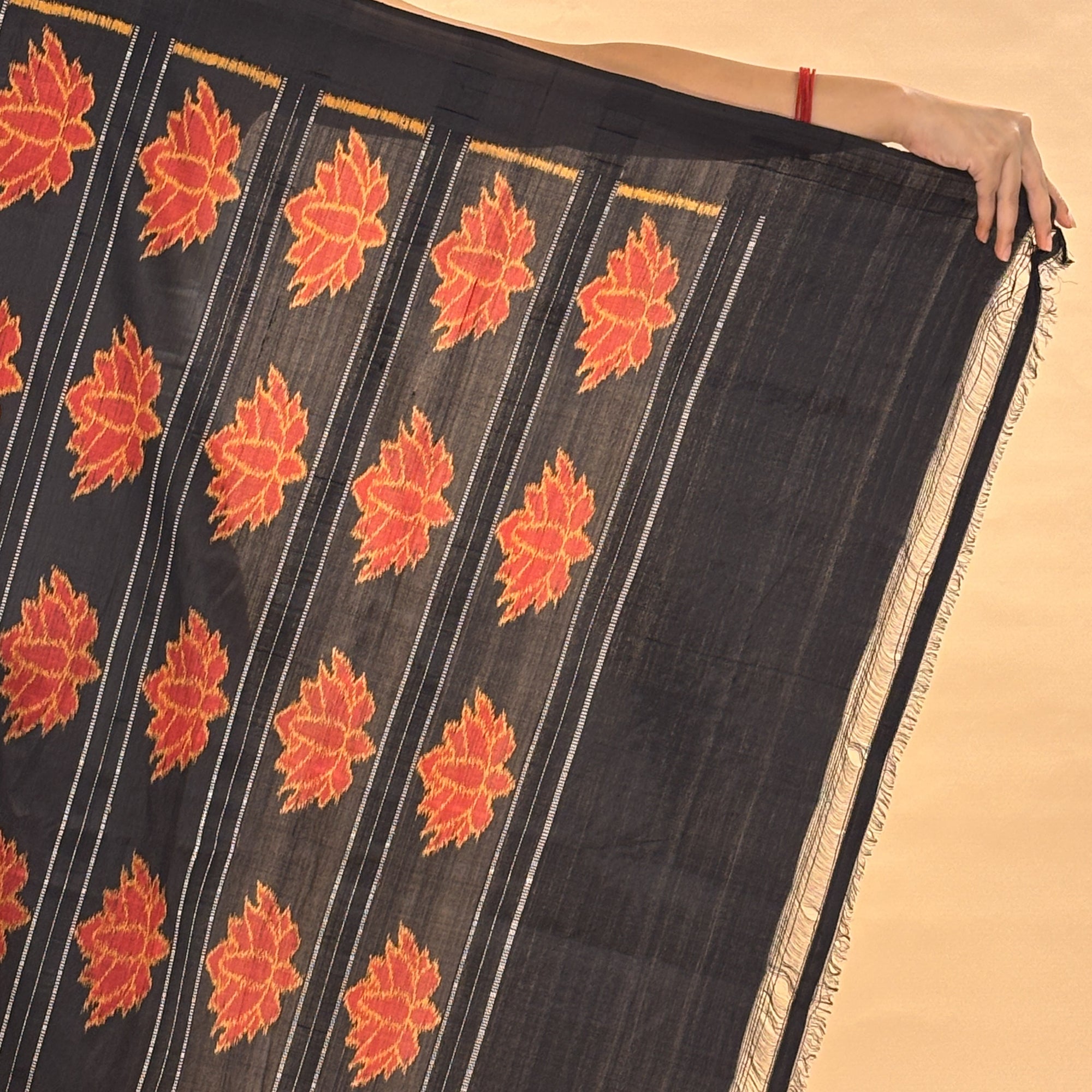 Golden & Black Mulberry Silk Odisha Ikat Saree
