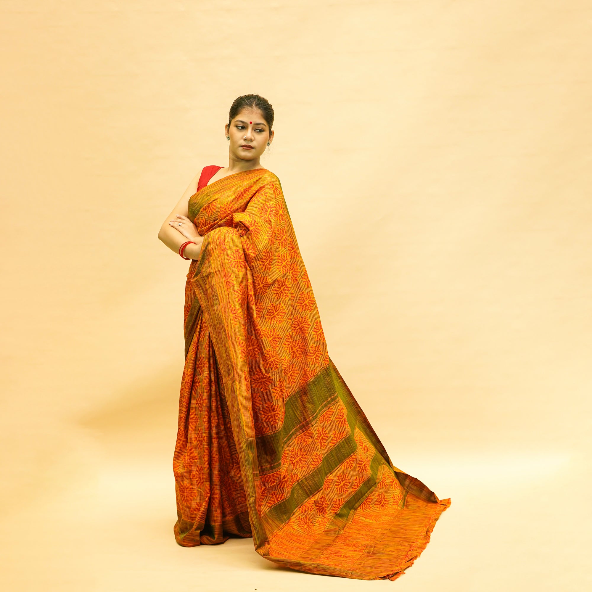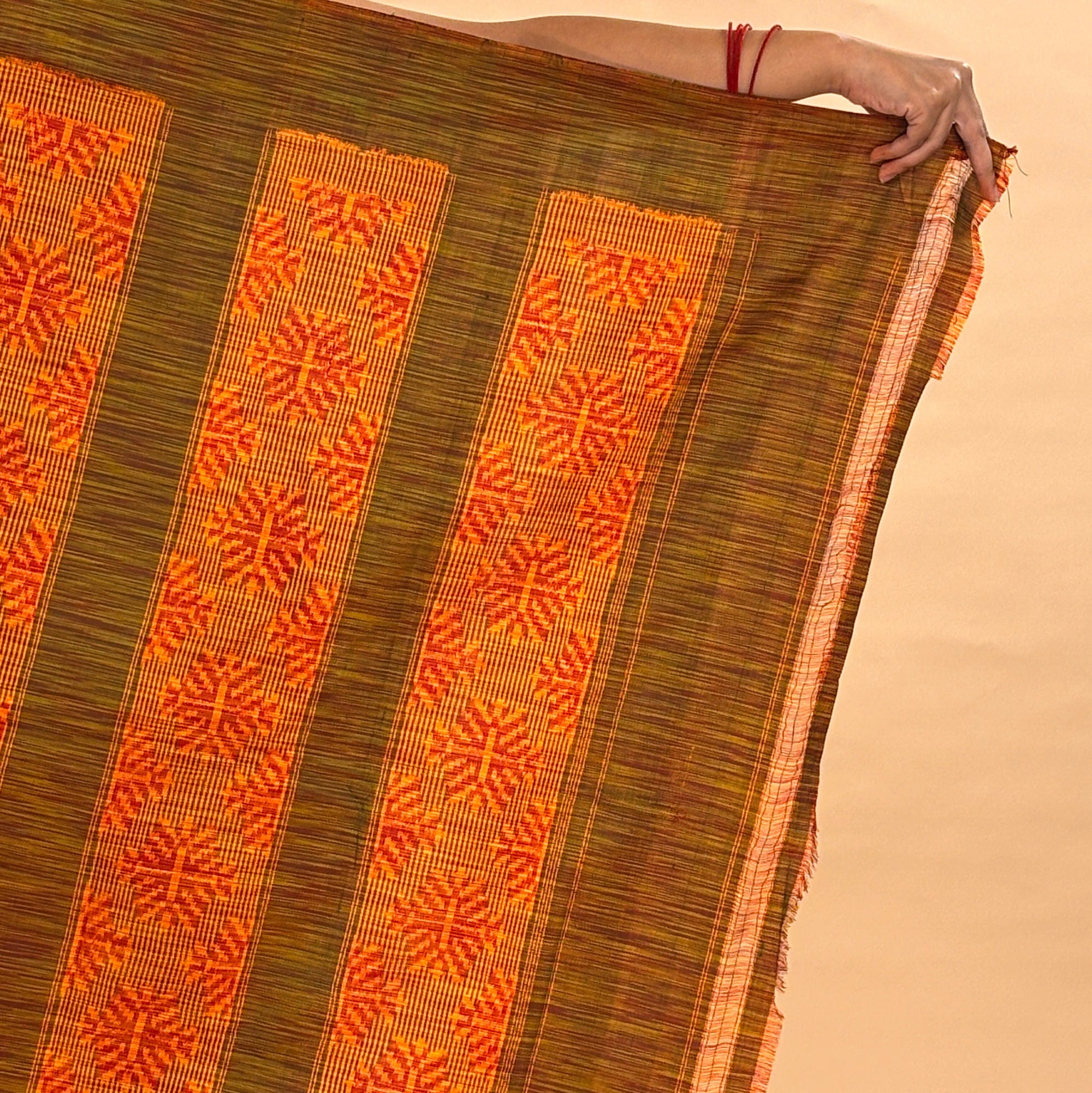 Bibhu Mohapatra Olive Green & Red Mulberry Silk Odisha Ikat Saree