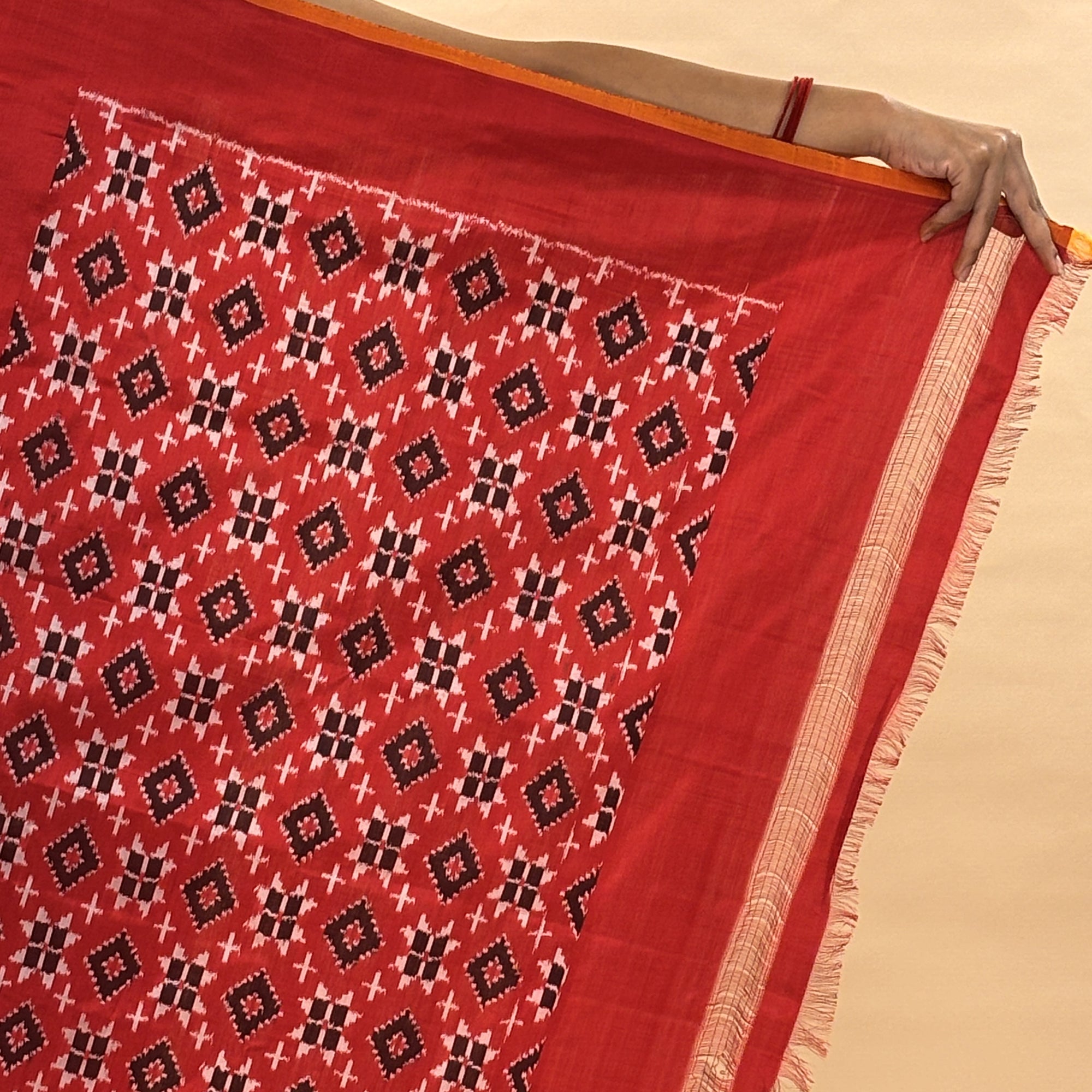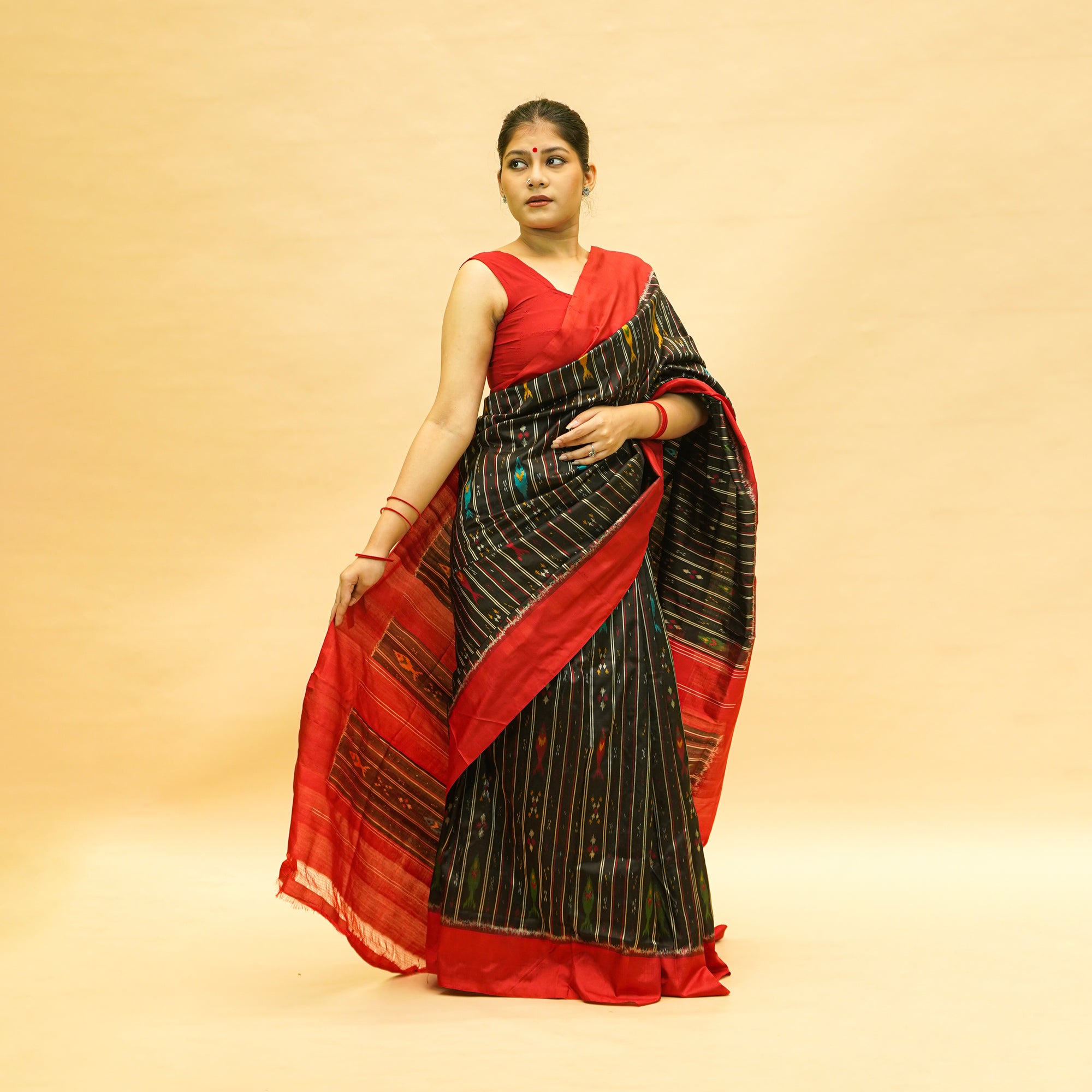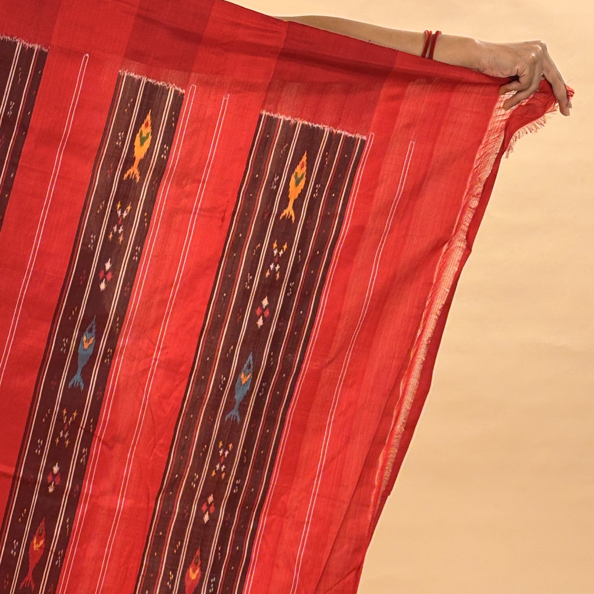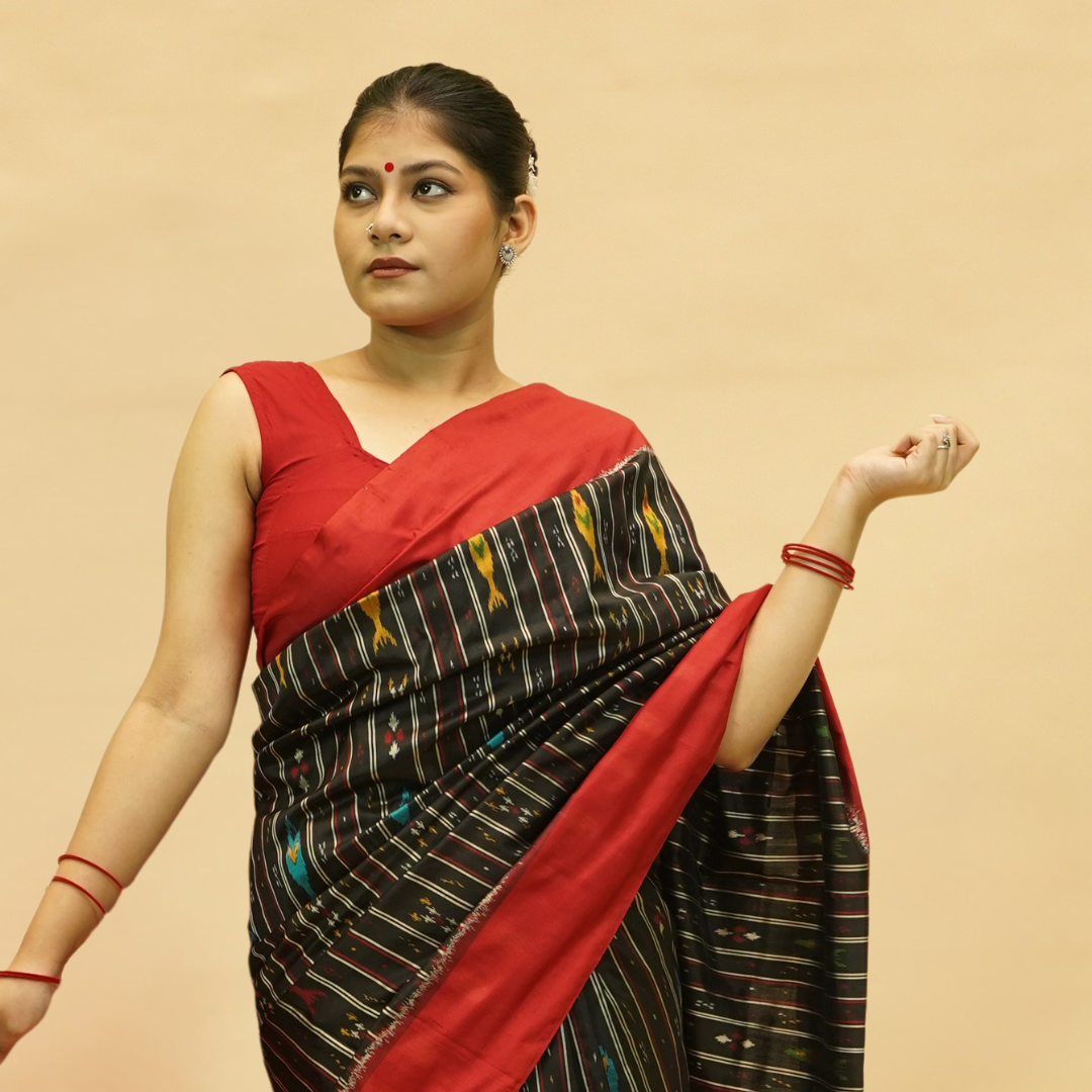Red & Black Mulberry Silk Odisha Double Warp Ikat Saree