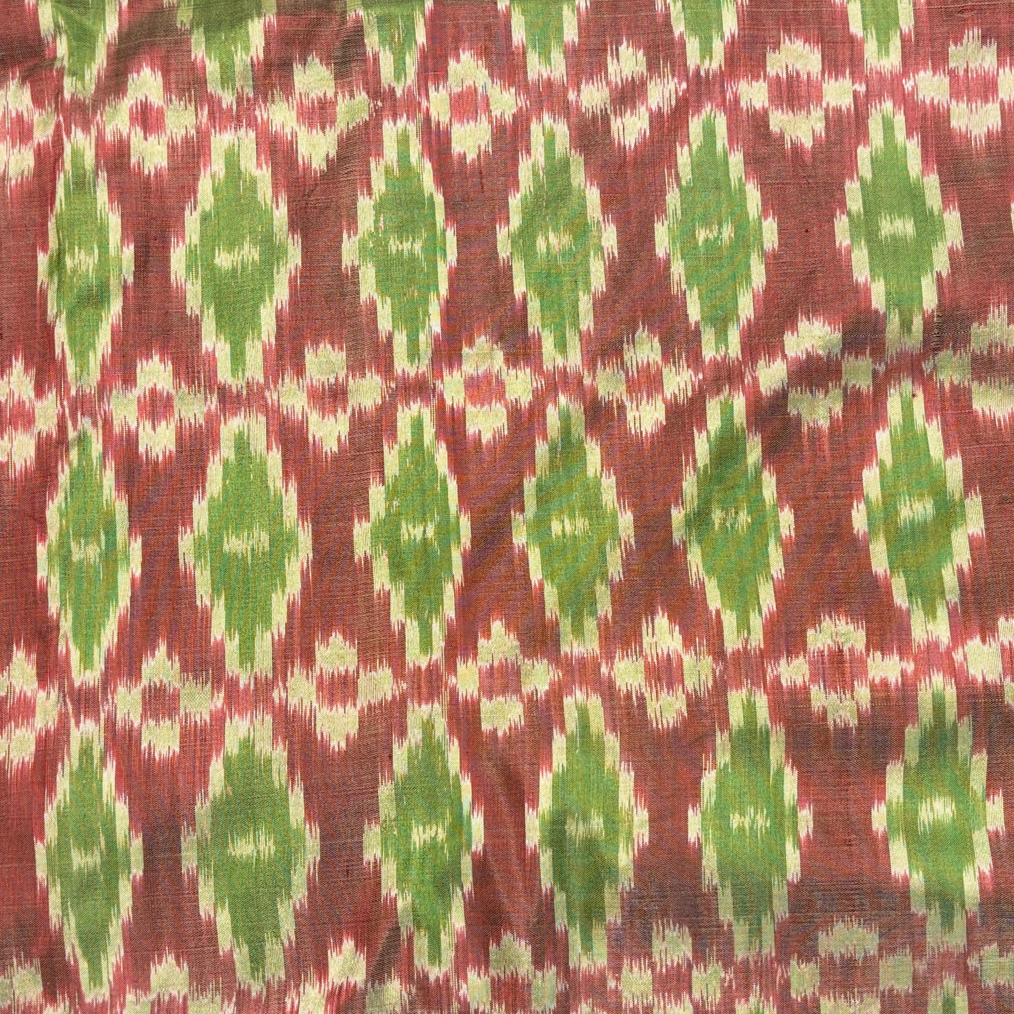Dark Pink and Green Mulberry Silk Pochampally Ikat Fabric