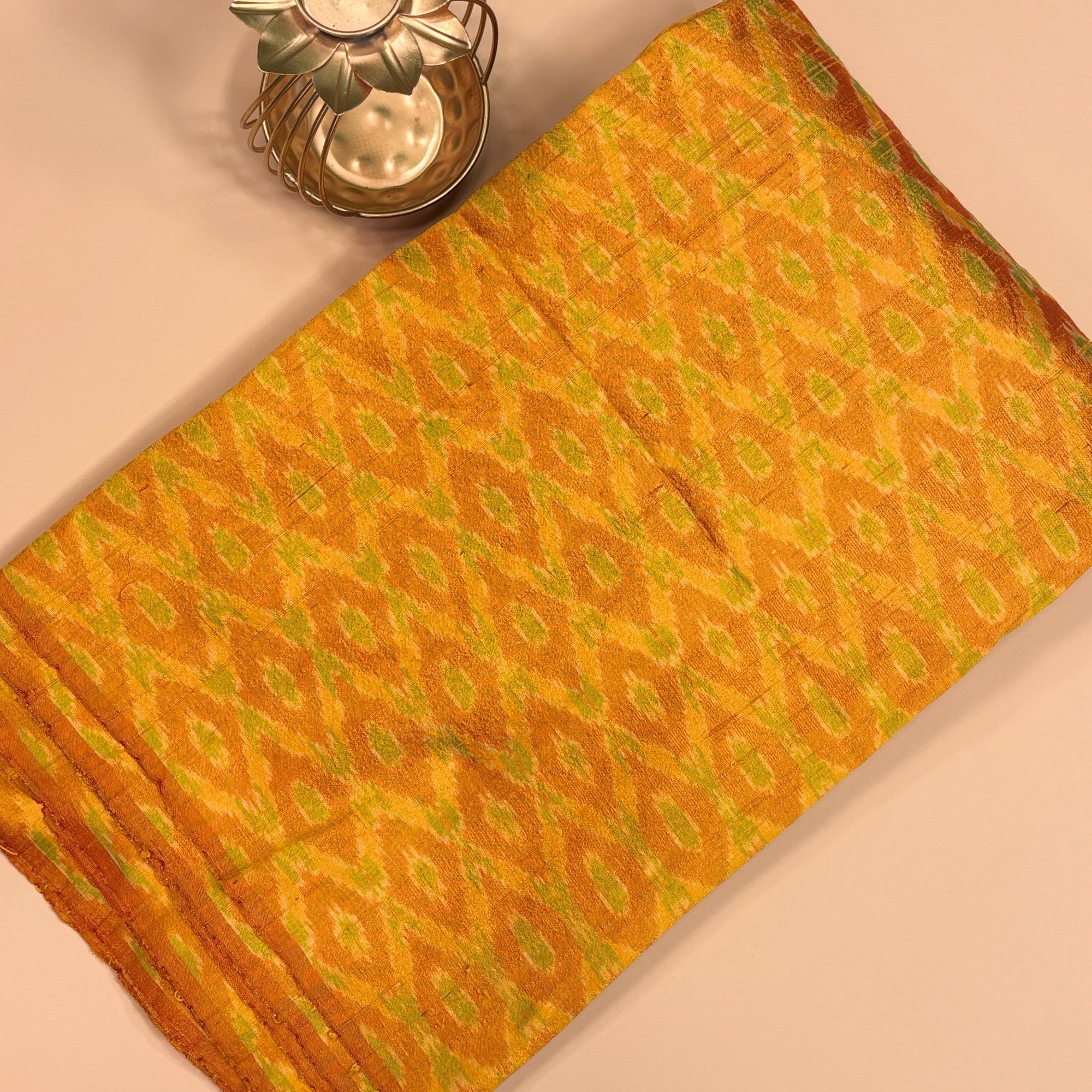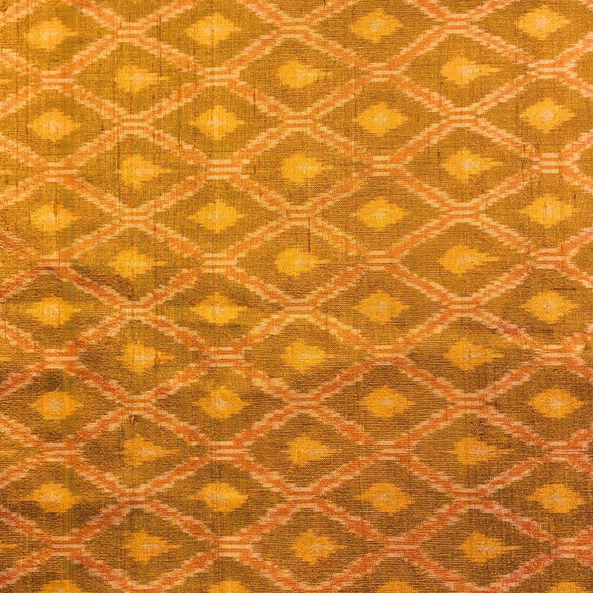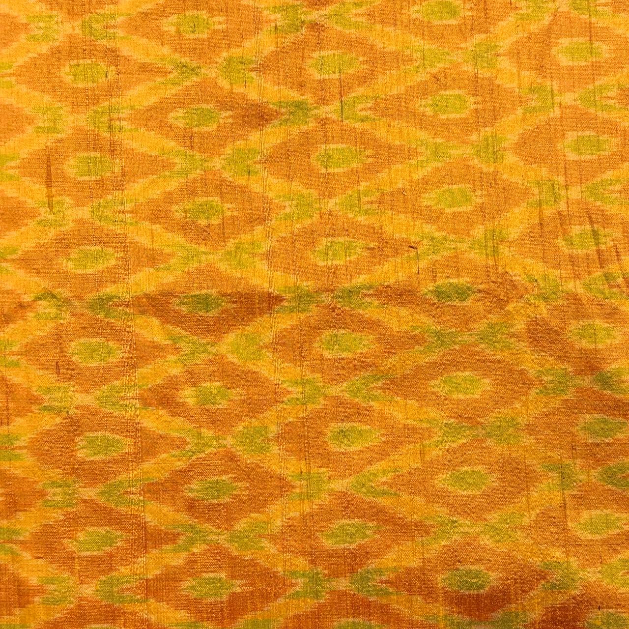 Ochre Yellow & Green Raw Silk Pochampally Ikat Fabric