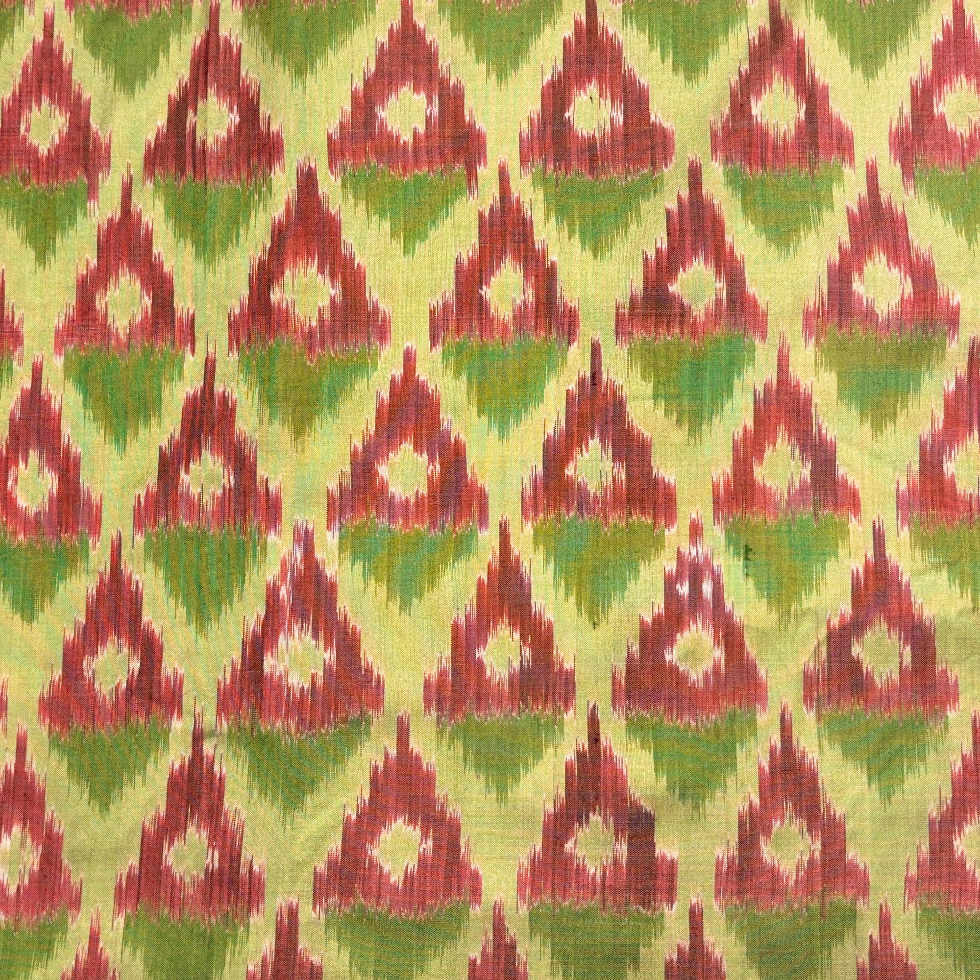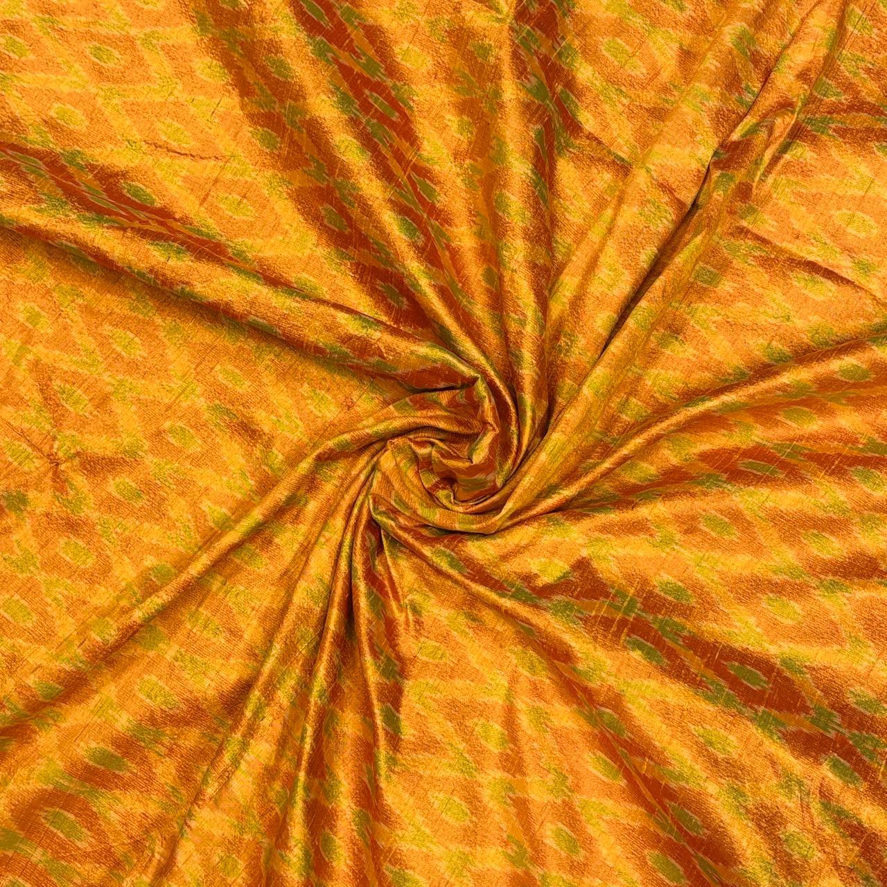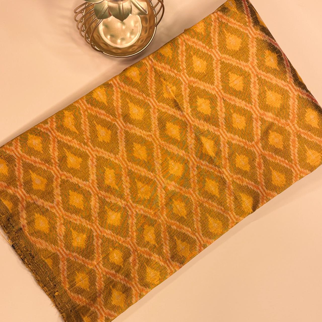 Ochre Yellow & Green Raw Silk Pochampally Ikat Fabric