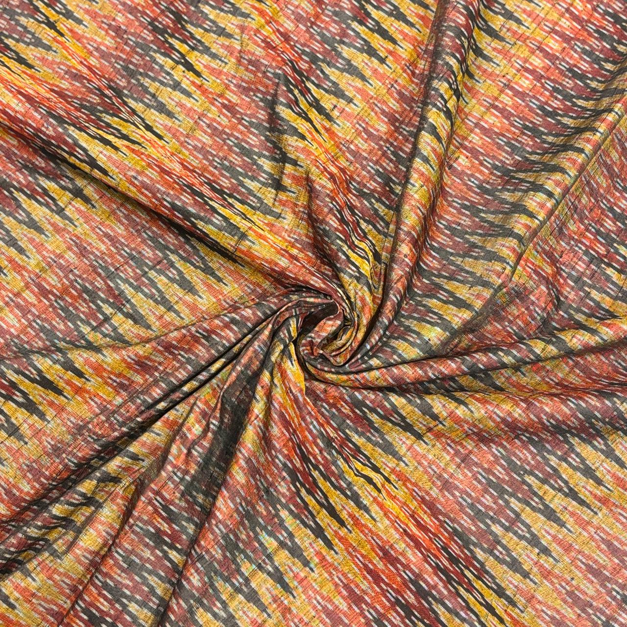 Shades of Yellow Raw Silk Pochampally Ikat Fabric