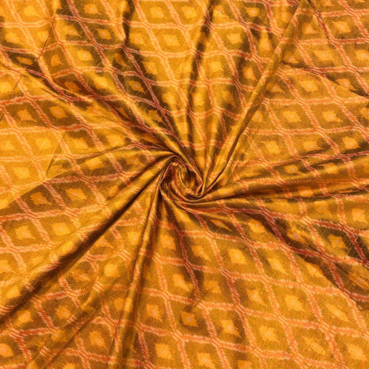 Golden Yellow Raw Silk Pochampally Ikat Fabric