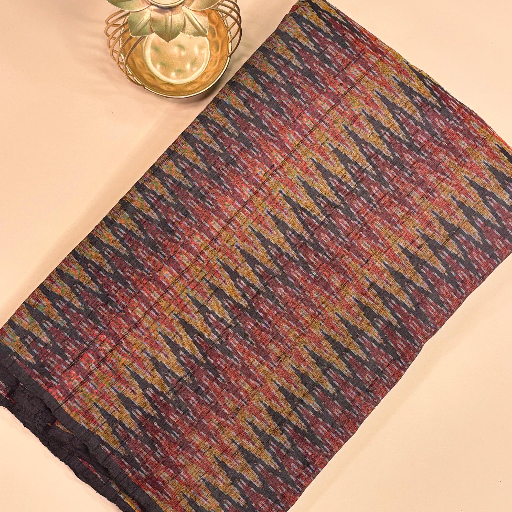 Black Zig-Zag Raw Silk Pochampally Ikat Fabric