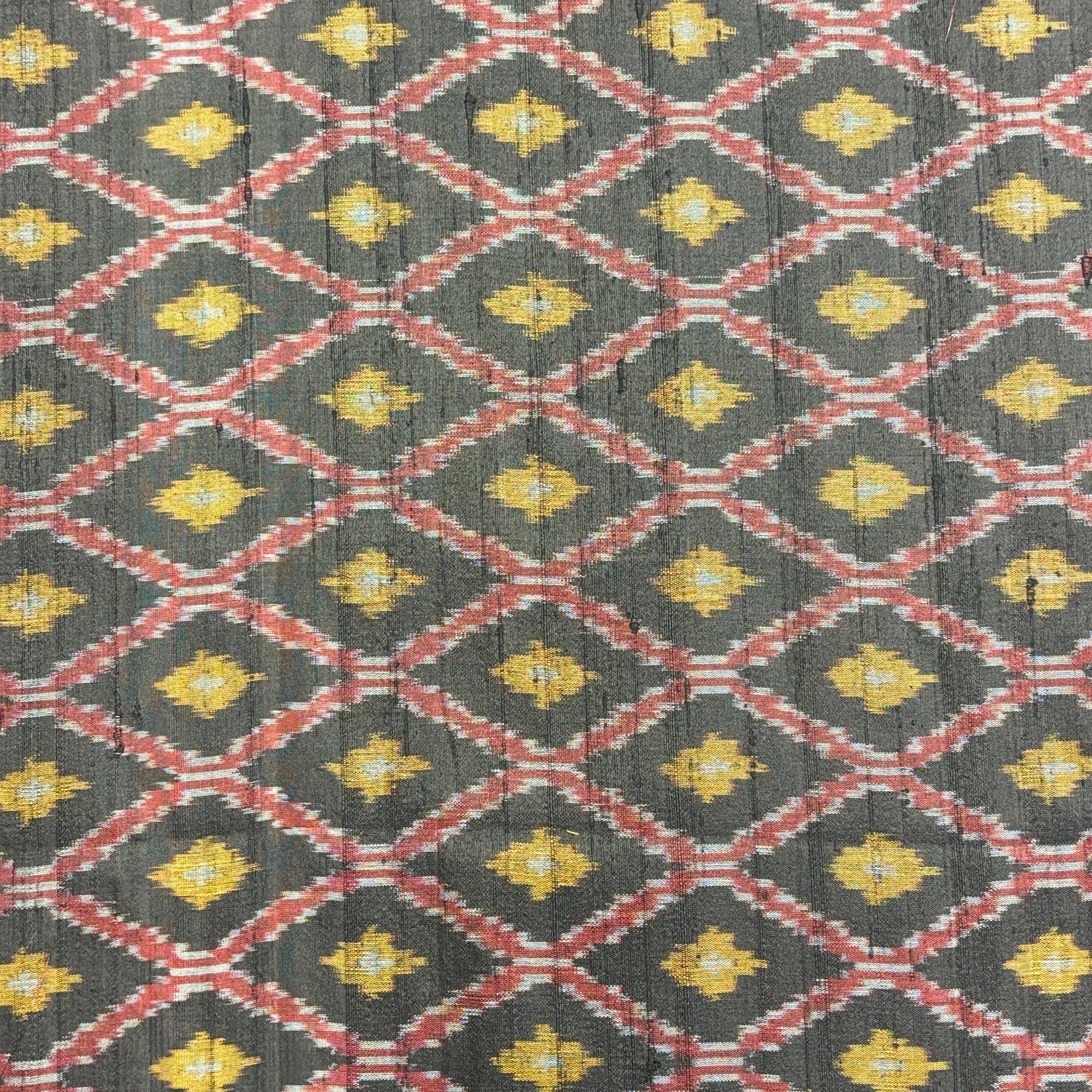 Black Raw Silk Pochampally Diamond Ikat Fabric