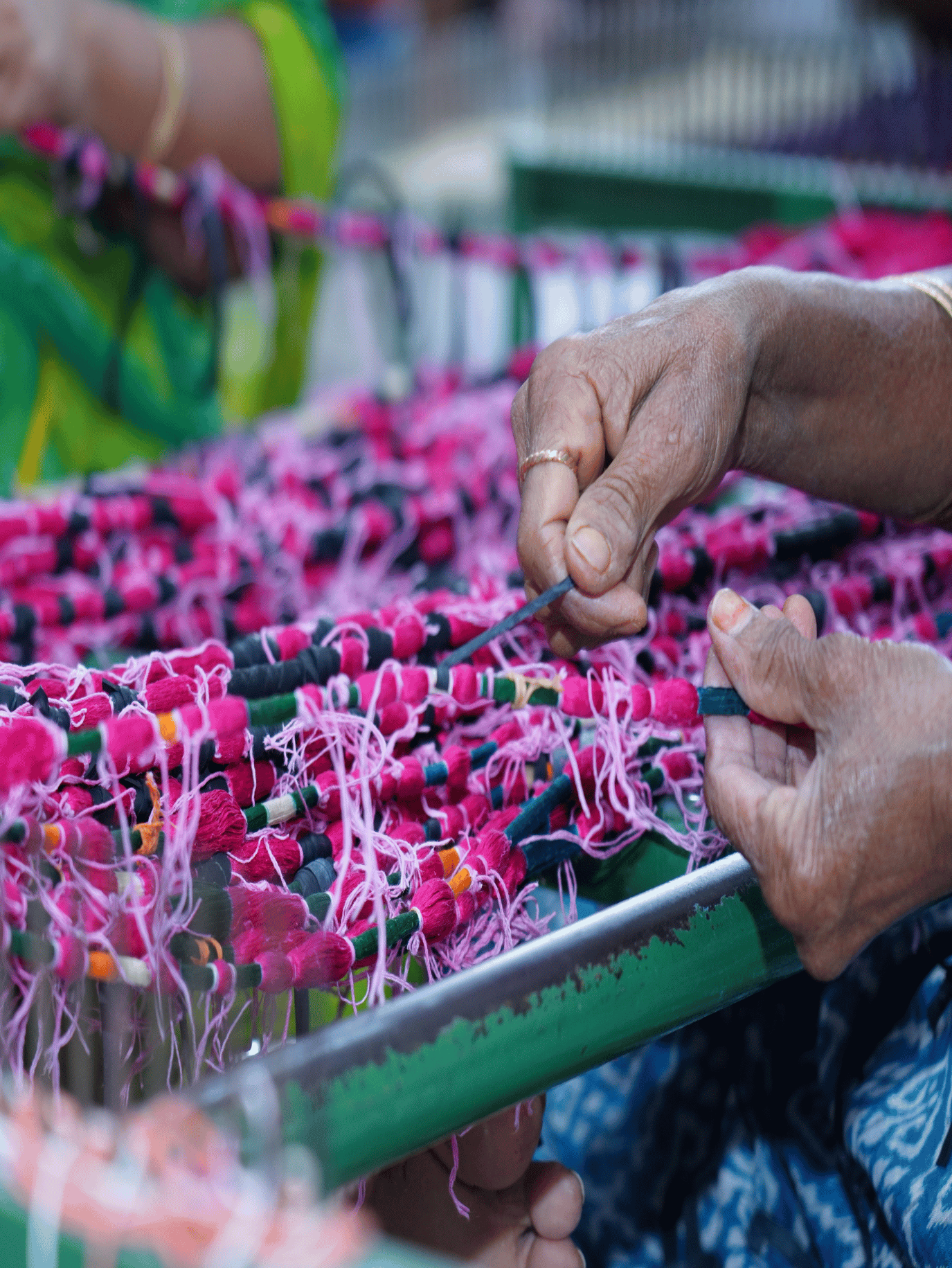 The threads undergo a meticulous process where hues are absorbed in stages. With each application, new layers of depth and contrast take shape, ensuring the final piece reflects the intended vibrancy and complexity.