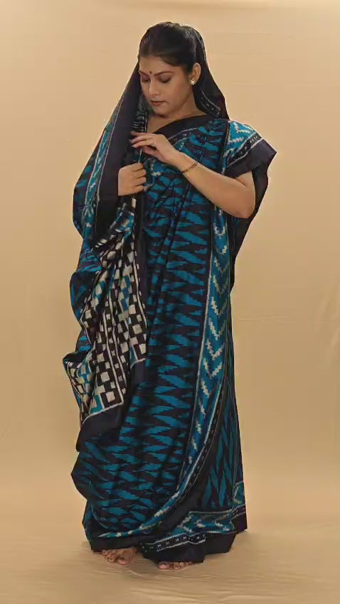 Bibhu Mohapatra Blue & Silver Mulberry Silk Odisha Ikat Saree